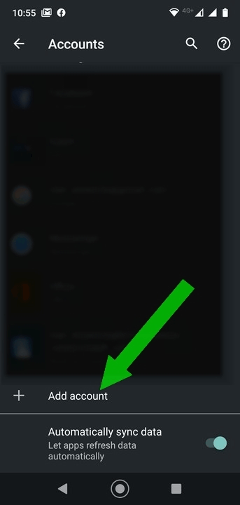 3. Select the ‘Add Account’ option at the bottom of the list. (click for image)