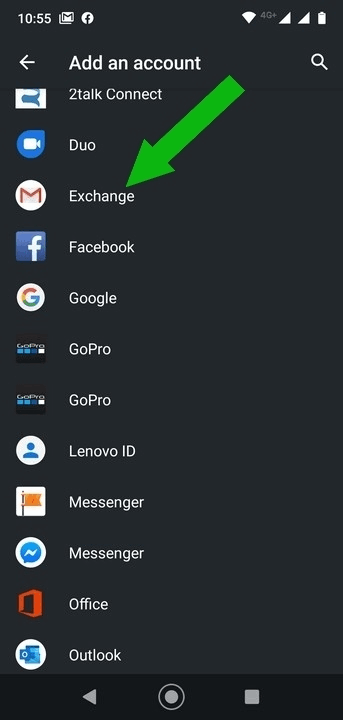 4. Select the 'Exchange' account type. (click for image)