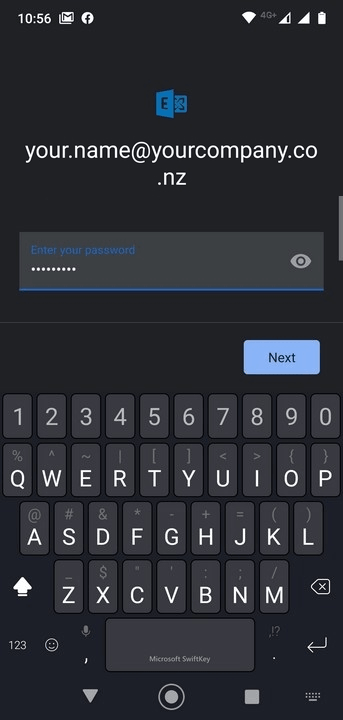 6. Enter your password and tap 'Next' Done! You now have your email available on your phone. (click for image)