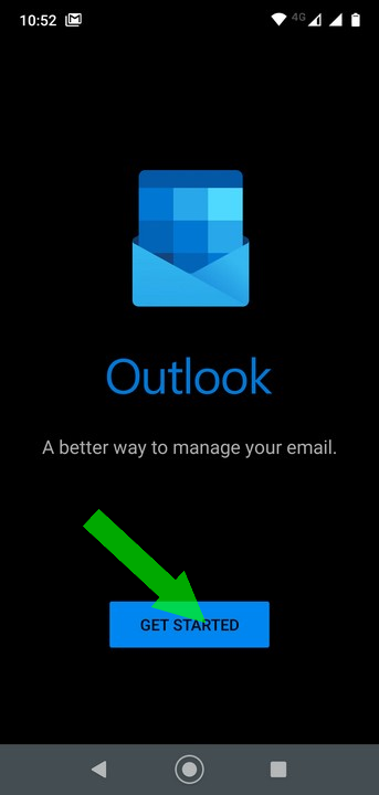 1. Open the Outlook app on your phone and tap 'Get Started'. (click for image)