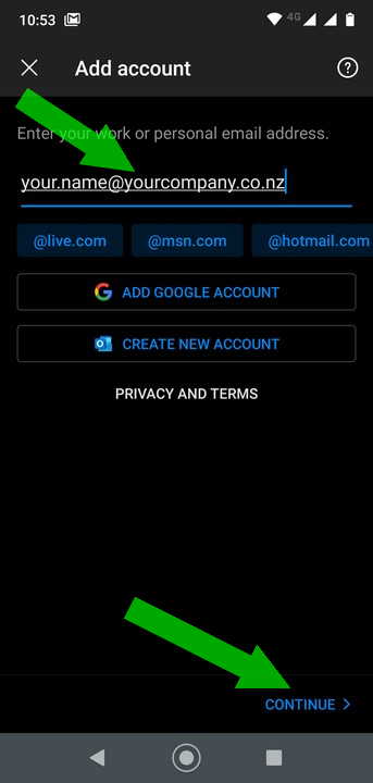 2. Enter your email address and tap 'Continue'. (click for image)