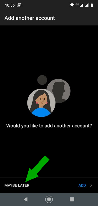5. If you're prompted to add another account, tap 'Maybe Later' (click for image)