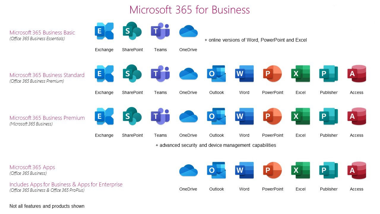 Business email and Microsoft Teams not included.